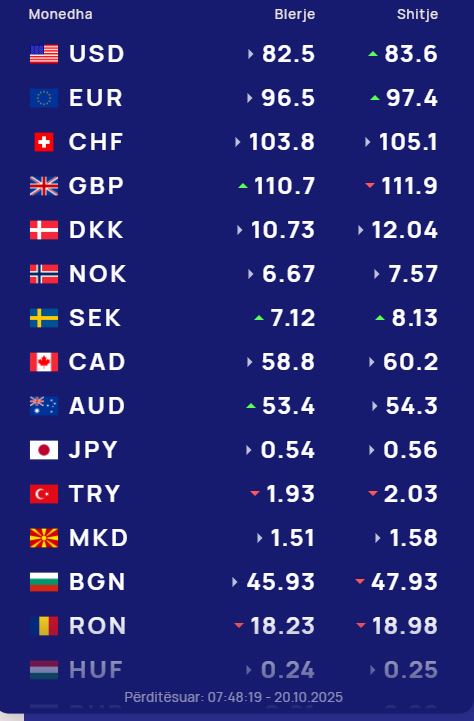 Më poshtë, po sjellim të dhënat e këmbimin valutor, për të gjitha monedhat e huaja: