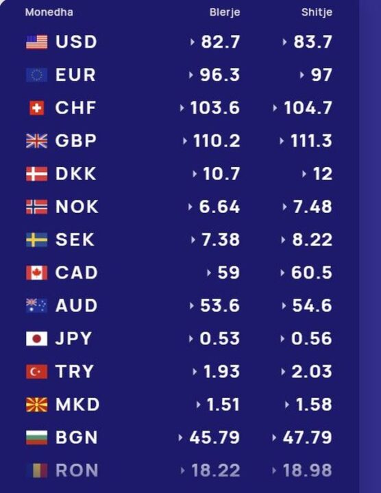 Më poshtë, po sjellim të dhënat e këmbimin valutor, për të gjitha monedhat e huaja: