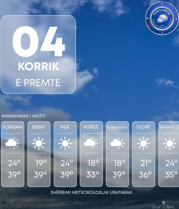 Ditën e premte, vendi ynë do të ndikohet nga kushte atmosferike të qëndrueshme, duke sjellë një ditë të kthjellët dhe me diell në të gjithë territorin.
