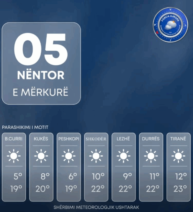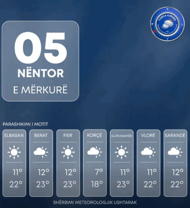 Ditën e mërkurë vendi ynë do të ndikohet nga kushte atmosferike të qëndrueshme. Moti parashikohet me kthjellime dhe vranësira të pakta kalimtare në relievet malore.