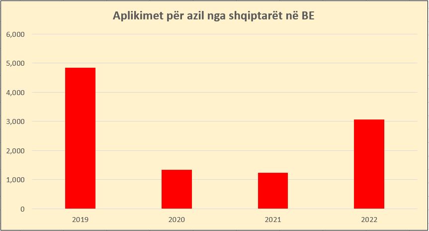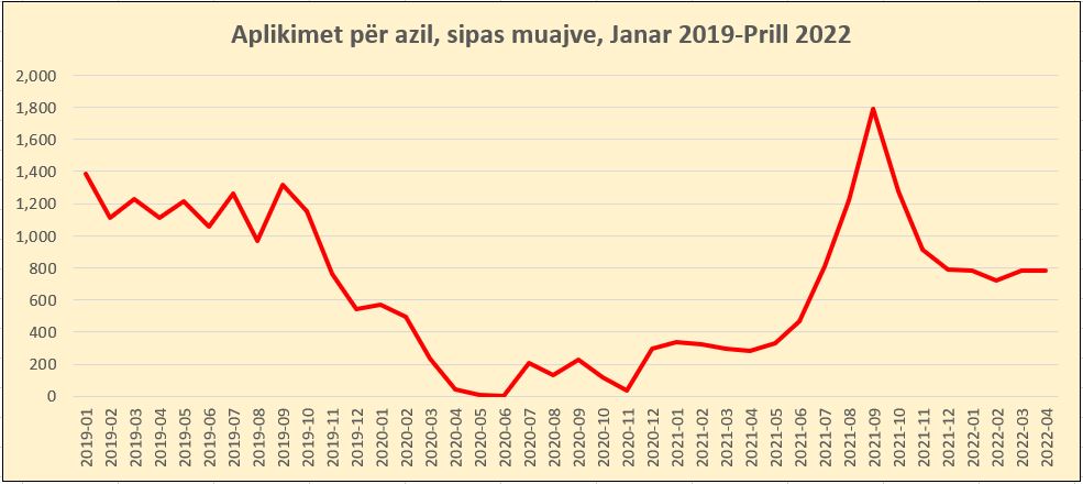Numri i kërkesave për azil nga shqiptarët në vendet e Bashkimit Europian ka vijuar të mbetet i lartë edhe në maj 2022, ndonëse me rënie në raport me muajt e fundit të 2021-t, ndërsa si pesë mujor është shumë më i lartë se e njëjta periudhë e 2021-it, kur lëvizjet ishin ende të kufizuara për shkak të pandemisë.
