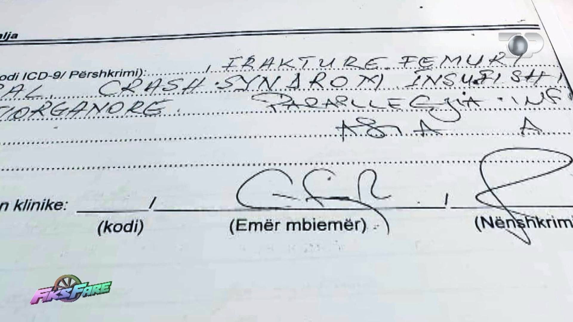 Fiksi siguroi dokumente nga Spitali i Tivarit, ku edhe në këto dokumente shkruhet frakturë, ndërsa dyshimi mbetet te fakti që brenda ditës, i aksidentuari është transportuar nga Spitali i Tivarit në Spitalin Rajonal Shkodër.