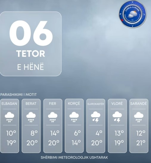 Ndërkohë era do të fryjë me drejtim juglindje veriprerëndim me shpejtësi mesatare 12m/s, ndërsa në bregdet dhe lugina kryesisht gjatë orëve të mesditës e pasdite do të arrijë shpejtësi 25m/s.