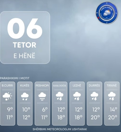 Ditën e sotme vendi ynë do të ndikohet nga kushte atmosferike të paqëndrueshme.