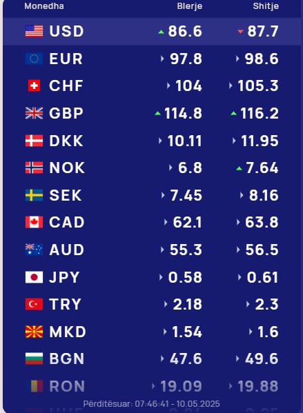Ndërsa paundi britanik do blihet me 114.8 lekë dhe do shitet me 116.2 lekë.