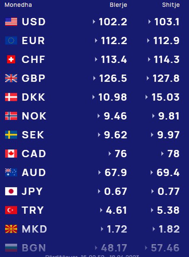 Sot, më 19 prill 2023, dollari amerikan blihet me 102.2 lekë dhe shitet me 103.1 lekë.