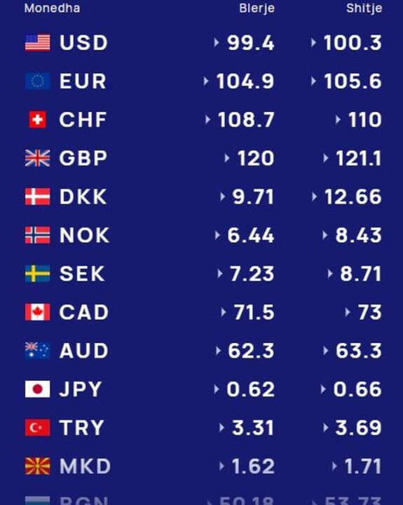 Më poshtë po sjellim të dhënat e këmbimit valutor, për të gjitha monedhat e huaja: