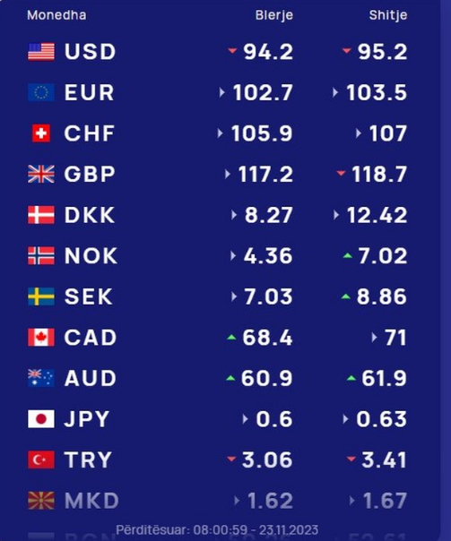 Më poshtë po sjellim të dhënat e këmbimit valutor, për të gjitha monedhat e huaja: