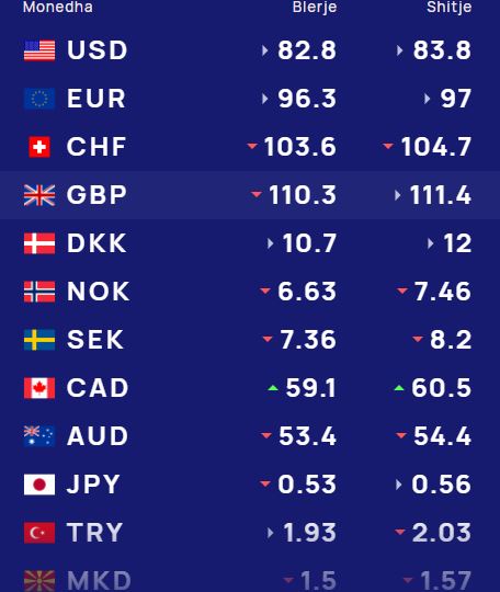 Më poshtë, po sjellim të dhënat e këmbimin valutor, për të gjitha monedhat e huaja: