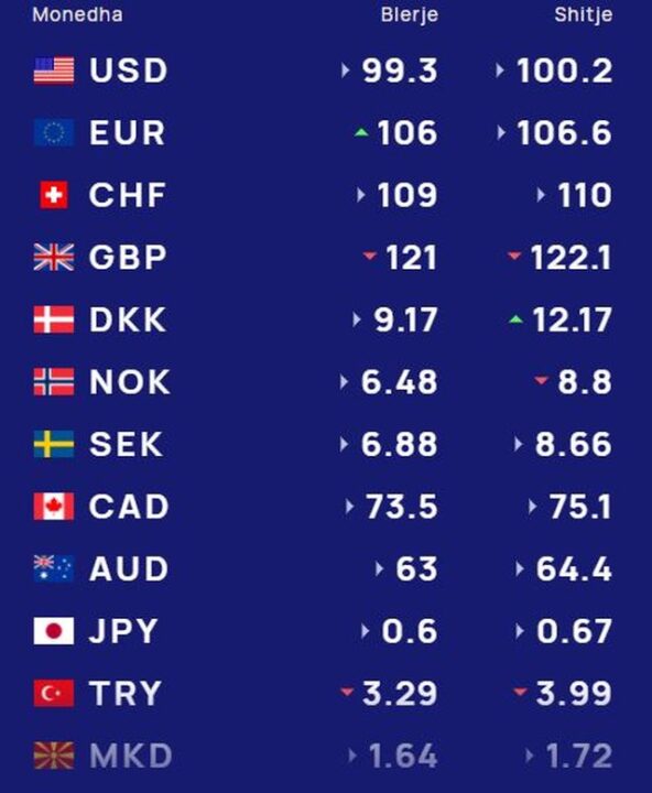 Më poshtë, po sjellim të dhënat e këmbimit valutor, për të gjitha monedhat e huaja:
