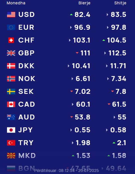 Ndërsa paundi britanik do blihet me 111 lekë dhe do shitet me 112.5 lekë.