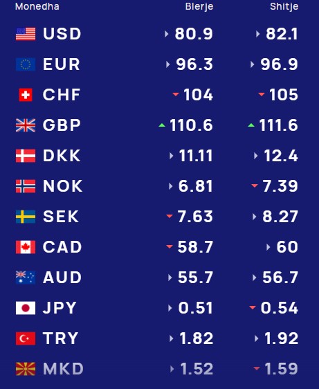 Për valutat e tjera, ndiqni tabelën më poshtë: