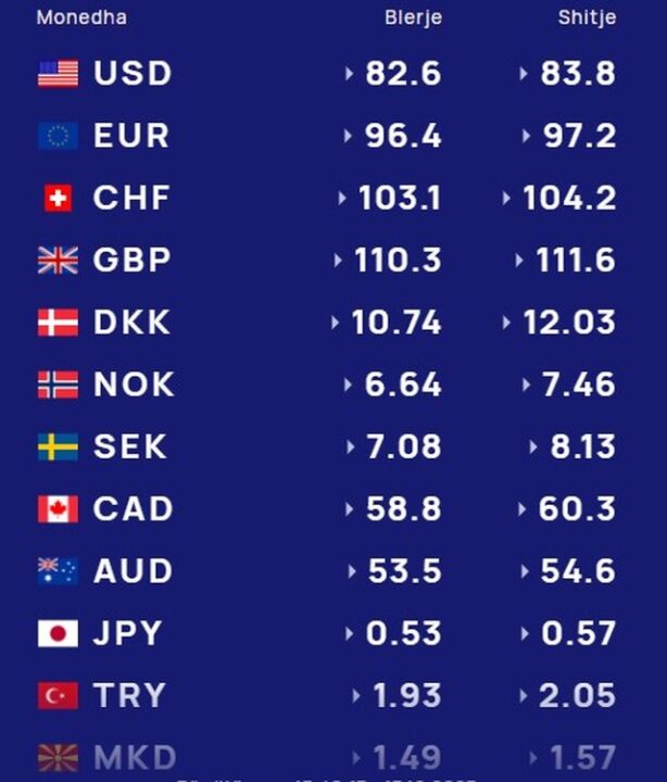 Për kursin e monedhave të tjera shihni tabelën e mëposhtme: