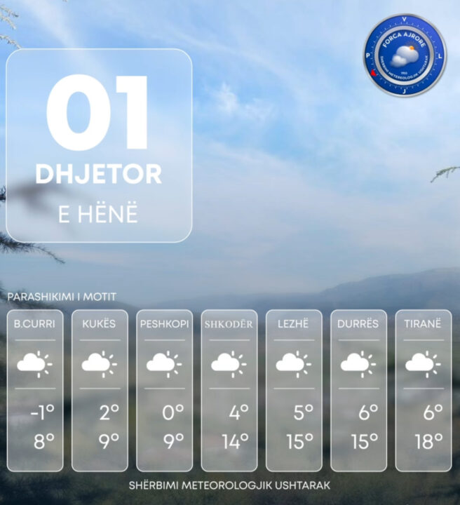 Ditën e hënë vendi ynë do të jetë në ndikim të masave ajrore të qëndrueshme.