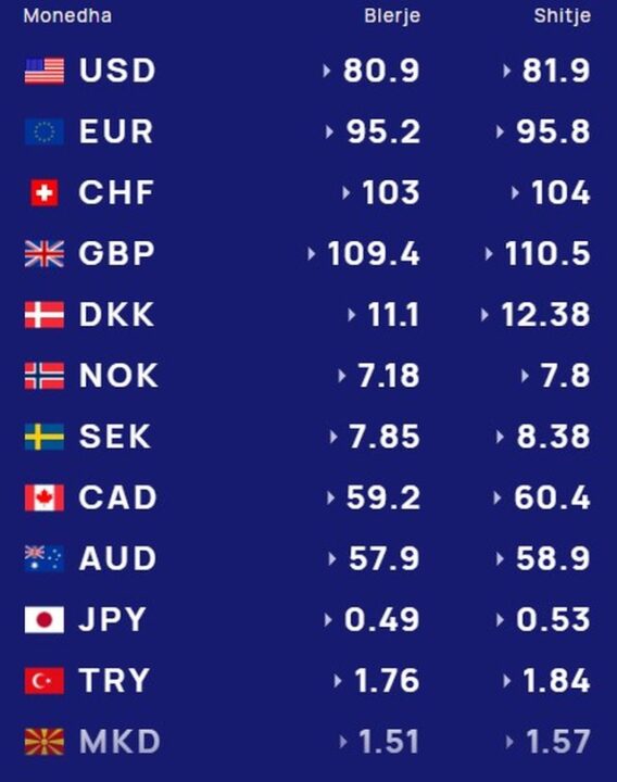 Euro blihet me 95.2 lekë dhe do të shitet me 95.8 lekë.