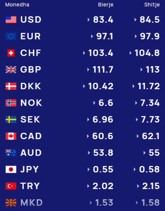 Euro do të më blihet 97.1 lekë dhe do të më shitet 97.9 lekë.