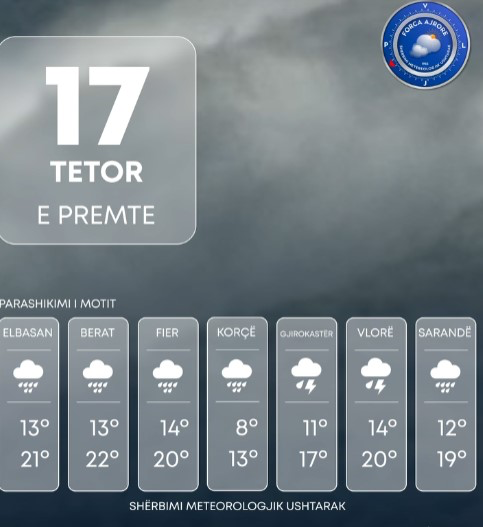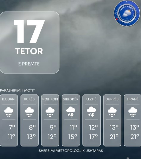 Më pas reshjet e shiut mbeten të herëpashershme me intensitet të ulët deri mesatar, ndërsa në orët e mbrëmjes në zonën e qendrës reshjet lokalisht me intensitet deri të lartë.
