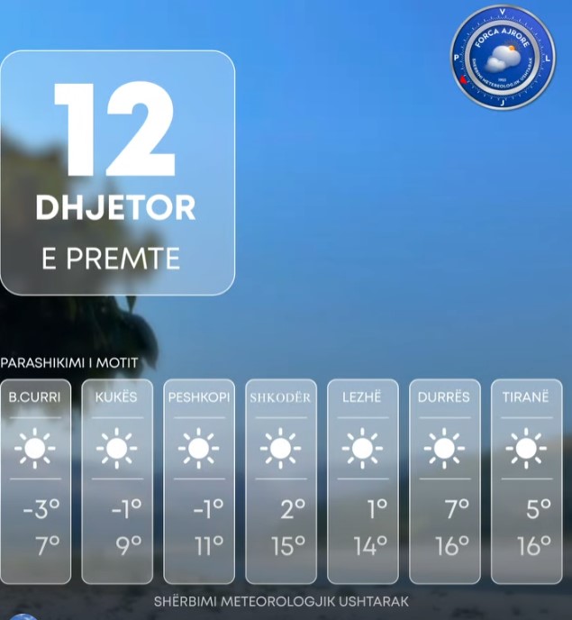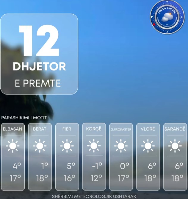 Këtë të premte, vendi ynë do të ndikohet nga kushte atmosferike të qëndrueshme.