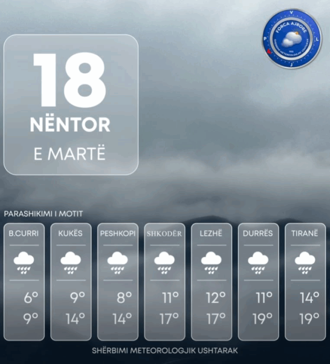 Vendi ynë ditën e martë do të ndikohet nga kushte atmosferike të paqëndrueshme.