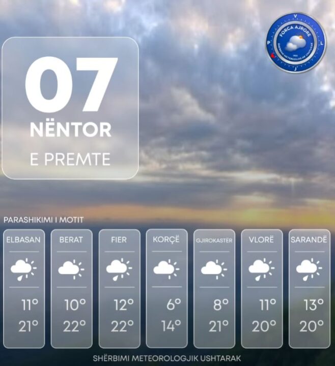 Ditën e premte vendi ynë do të ndikohet nga kushte atmosferike të paqëndrueshme.
