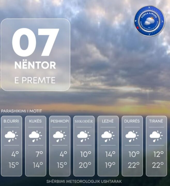Moti parashikohet të jetë me alternime kthjellimesh dhe vranësira të cilat hera-herës priten të jenë deri të dendura.