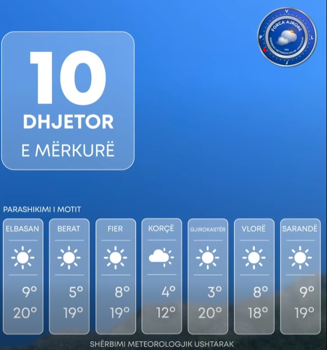 Ditën e sotme vendi ynë do të ndikohet nga kushte atmosferike të qëndrueshme.