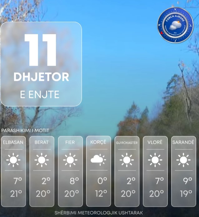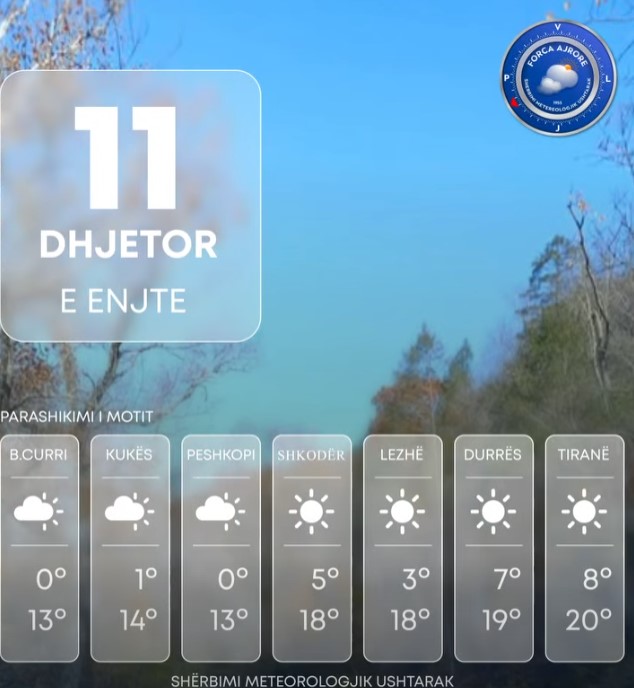 Ditën e sotme vendi ynë do të ndikohet nga kushte atmosferike të qëndrueshme.