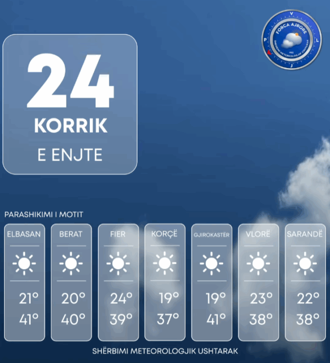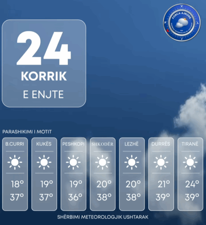Ditën e enjte vendi ynë do të jetë në ndikimin e kushteve atmosferike të qëndrueshme. Moti parashikohet i kthjellët në të gjithë territorin.