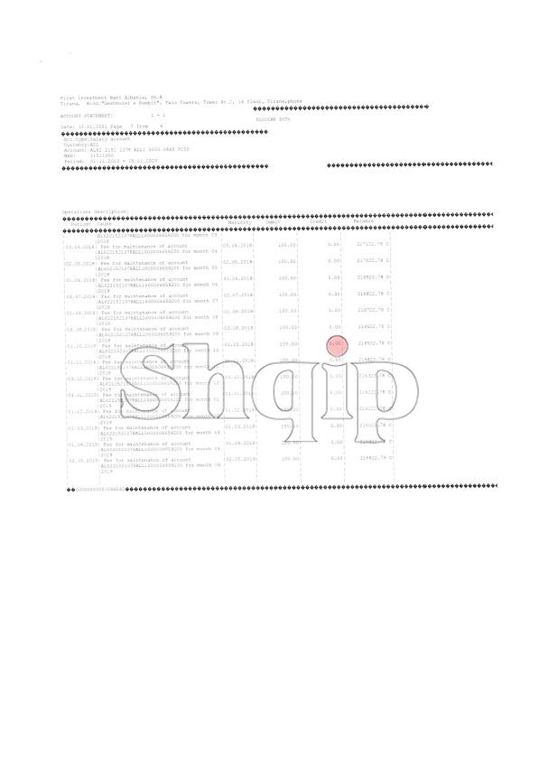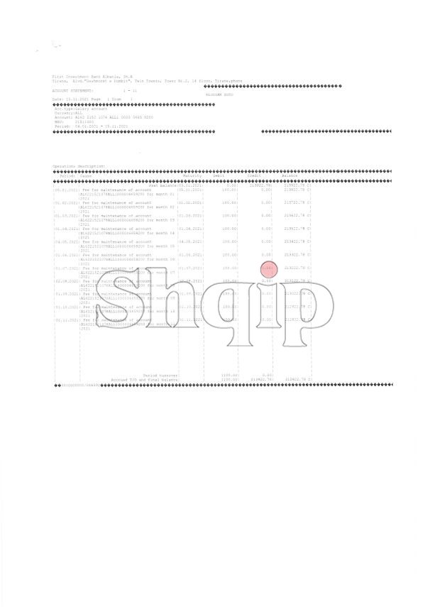 Më poshtë të transaksionet që ka publikuar FiBank, për klientin e saj: