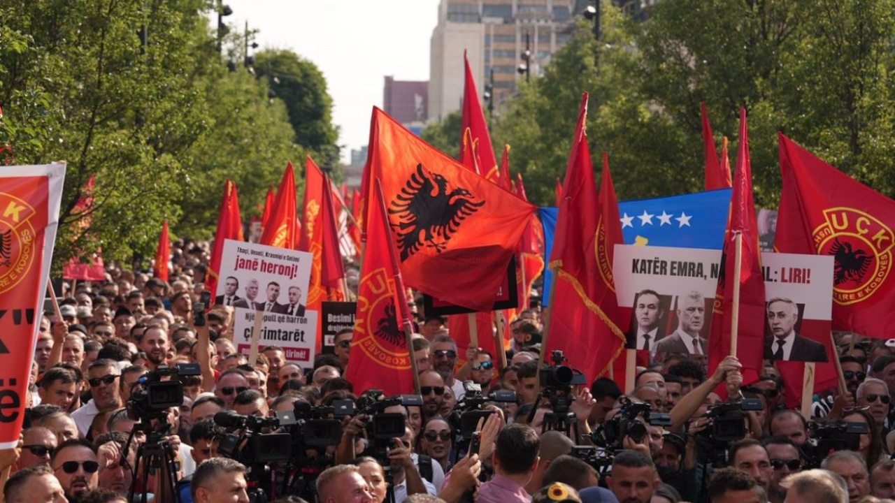 Mijëra protestues, nga qytete të ndryshme të Kosovës dhe vende të rajonit, janë mbledhur në sheshin Skënderbeu të Prishtinës dhe turmës fillimisht iu adresua kreu i Organizatës së Veteranëve të Luftës së UÇK-së (OVL-UÇK), Hysni Gucati.
