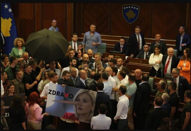 ”Skena zhgënjyese dhune shihen sot në Kuvend. Kuvendi nuk është vend për sulme fizike, por vend për të diskutuar propozimet dhe politikat në mënyrë demokratike.