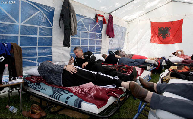 Katërmbëdhjetë persona janë futur në grevë urie, me motivacionin se janë shkarkuar në mënyrë të padrejtë nga puna. Ata janë biznesmenë, drejtorë, punëtorë të thjeshtë apo edhe emigrantë. Janë të moshave të ndryshme, ku një pjesë e mirë janë edhe femra. Në ditën e tretë të kësaj greve, organizatorët kanë vendosur që të rrethojnë me shirita vendin ku janë strehuar grevistët, në mënyrë që qytetarët të mbajnë distancë. Gazeta “Shqip”, ka mundur që të futet në njërën prej çadrave të grevës së urisë, ku qëndrojnë 10 prej tyre, të cilët janë edhe organizatorët e saj. Nën një zë, ata thonë se janë shkarkuar për motive të paarsyetueshme dhe kërkojnë zbatimin e ligjit, duke u rikthyer në punë, qoftë dhe jo në pozicionet e tyre të mëparshme. Gjithashtu, ata shprehen se kjo nuk është më vetëm greva e tyre, por e tetë mijë nëpunësve të shkarkuar në mënyrë të padrejtë. Gazeta ka bërë një profil të shkurtër për 10 grevistët e urisë, të cilët zotohen se do të qëndrojnë aty deri në zgjidhjen e kërkesave të paraqitura kohë më parë.