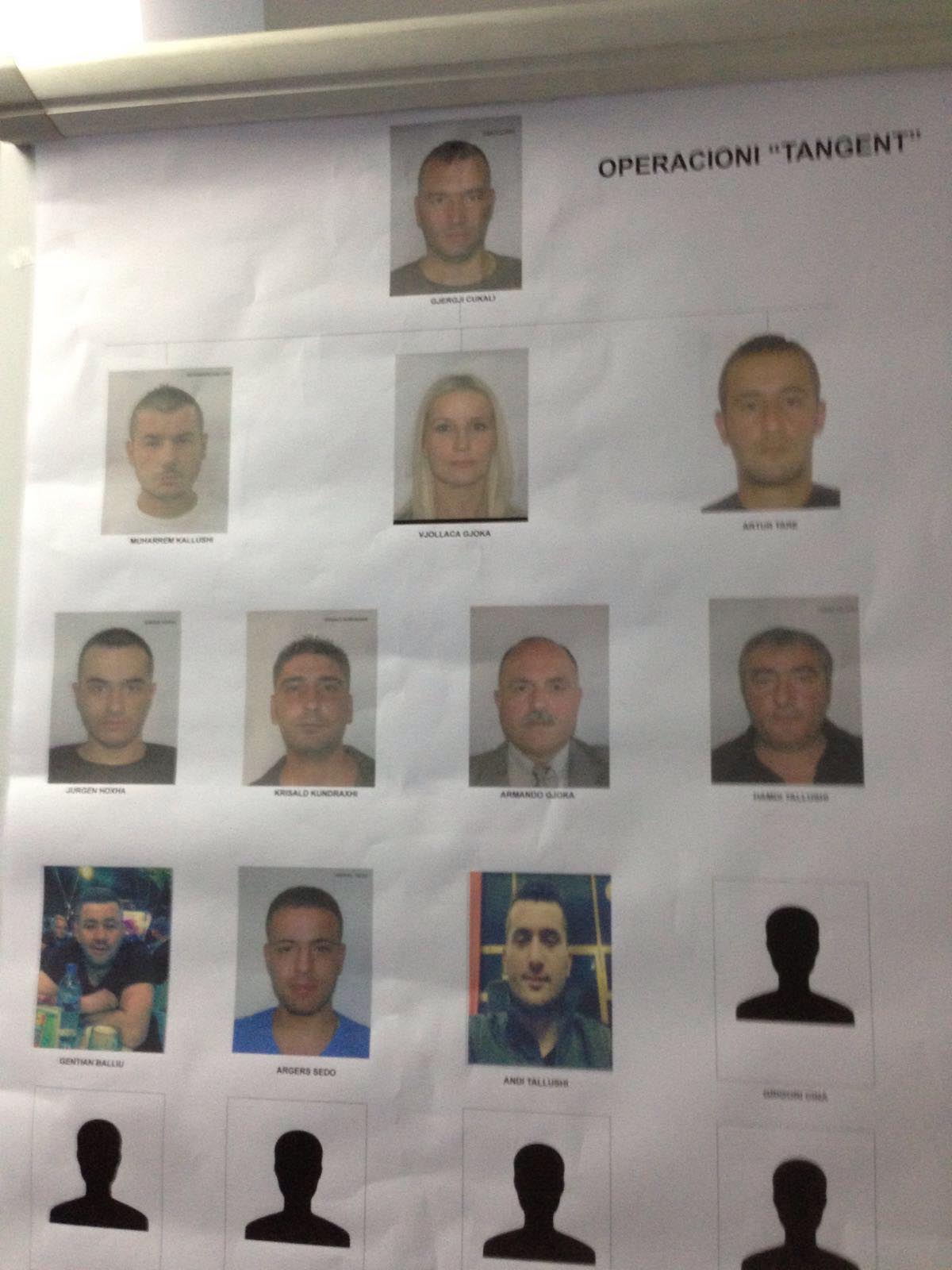 Lajmin për shkatërrimin e këtij rrjeti kriminal, preferoi ta jepte vetë kryepolici i Tiranës, Ervin Hodaj, i cili gjatë një deklarate për shtyp tha se në pranga, në kohë të ndryshme, janë vënë 16 anëtarë të një grupi kriminal. Të arrestuarit e operacionit të koduar “Tangent” janë shtetas nga disa qytete të Shqipërisë, por edhe nga Kosova. Ndër ta ka edhe të dënuar më herët për vepra të rënda penale. Në kuadër të këtij operacioni, janë proceduar penalisht: Gjergji Cukali, 37 vjeç, nga Tirana, i dënuar më parë për pengmarrje dhe armëmbajtje pa leje; Artur Tarja, 36 vjeç, nga Tirana, i dënuar më parë për shkelje të rregullave të qarkullimit rrugor dhe Muharrem Kallushi, 32 vjeç, nga Tirana. Të arrestuarit e tjerë janë Vjollca Gjoka, 46 vjeçe, nga Tirana; Gentian Balliu, 30 vjeç, lindur në Kurbin e banues në Tiranë; Armand Gjoka, 50 vjeç, nga Tirana dhe Krisald Kundraxhi, 29 vjeç, nga Tirana, i dënuar më parë për veprën penale të prodhimit dhe shitjes së lëndëve narkotike. Në kohë të ndryshme, më herët janë arrestuar edhe 9 shtetas, të identifikuar me inicialet J. K., 26 vjeç, nga Tirana; A. M., 37 vjeç, nga Prishtina; J. B., 33 vjeçe, nga Prishtina; H. T., 45 vjeç, nga Kavaja; A. T., 27 vjeç, nga Kavaja; J. H., 26 vjeç, nga Durrësi; A. S., 26 vjeç, nga Korça; G. Ç., 25 vjeç, nga Korça dhe M. J., 33 vjeç, nga Tirana. Sipas Hodajt, ky grup shpërndante lëndë narkotike kokainë në zona të ndryshme të Tiranës si “Myslym Shyri”, ish-Blloku, sheshi “Willson”, në rrugën “Ali Demi”, në zonën e Porcelanit dhe në Rrugën e Elbasanit. Drejtori i Policisë së Tiranës shtoi se ata siguronin lëndën narkotike përmes Gjergji Cukalit dhe më pas e shpërndanin, sipas porosive të marra nga klientët. Policia sekuestroi 282.1 gramë lëndë e dyshuar narkotike kokainë, 25 telefona celularë, 5 automjete të markave të ndryshme dhe 15 çelësa automjetesh, të cilat dyshohen se janë mjete të lëna si garanci për dhënien e shumave të ndryshme të parave. Po hetohen edhe pasuritë e vëna nga aktiviteti kriminal i anëtarëve të grupit. Për Cukalin është ngritur edhe akuza e “falsifikimit të dokumenteve”, pasi iu gjetën dhe iu sekuestruan një kartë identifikimi, patentë dhe pasaportë biometrike të falsifikuara.