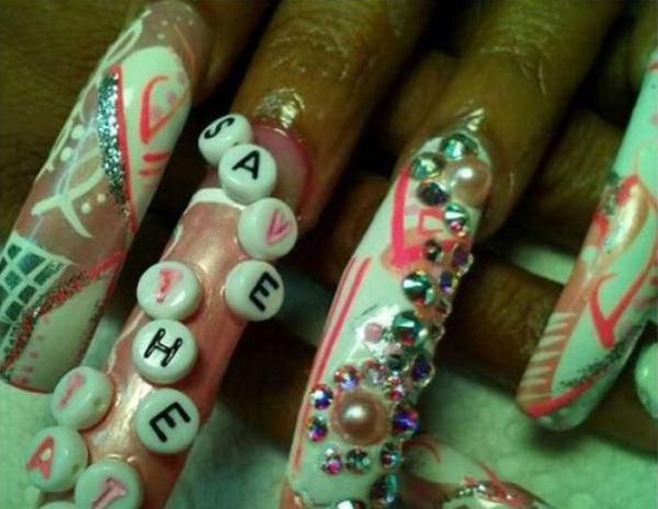 Por kërkesat e klienteve nuk janë të njëjta sepse ka edhe nga ato që shprehin ide ekstreme, ku shume prej femrave nuk do të guxonin t’i bënin thonjtë me këto lloje dizajnësh. Në po ju paraqesim disa prej tyre, që duhet thënë se nuk janë aspak të bukur, për të mos i përcaktuar si monstra: