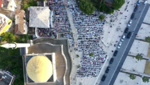 Në Durrës falja është bërë edhe në sheshin jashtë xhamisë për shkak të numri të madh të besimtarëve. Ju ftojmë të shikoni pamjet: