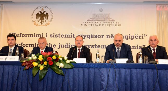 Reforma në Drejtësi, e thirrur nga presidenti Bujar Nishani, në bashkëpunim me Ministrinë e Drejtësisë, ka mbledhur në një takim krerët më të lartë të politikës shqiptare, përfshirë dhe liderët e dy partive më të mëdha në vend, Edi Rama dhe Lulzim Basha.