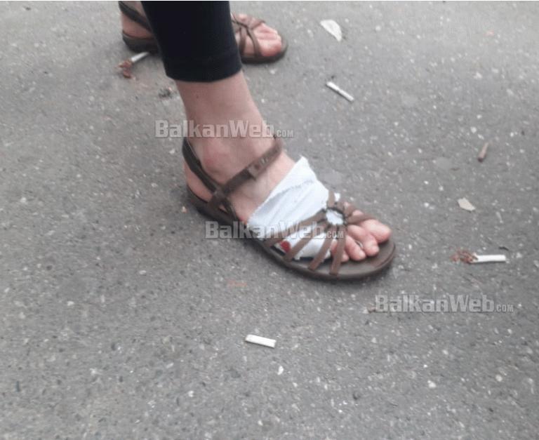 Pas kapsollave të hedhura në shesh, mbeti e lënduar gazetarja Sonila Prifti Osmanaj dhe gruaja, këmbën e të cilës e shihni në pamje. Ajo e ka fashuar këmbën, pavarësisht se gjaku i duket.