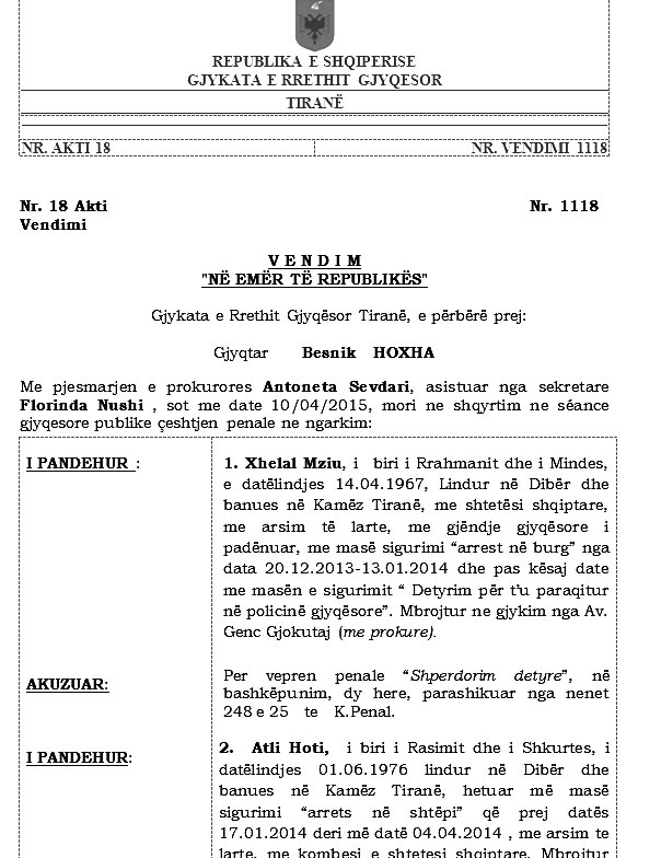 Gjykata e Apelit pushon gjyqin. Në shkallë të parë u dënua me dy vite burg. Dosja e plotë