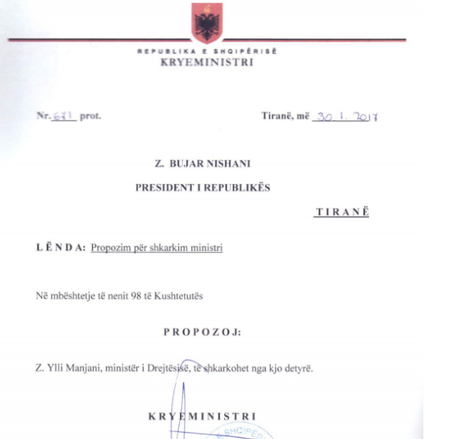 Më herët Manjani u shkarkua nga posti i ministrit të Drejtësisë me firmën e Ramës. Në një konferencë për shtyp, ish-ministri shpërtheu kundër qeverisë dhe ministrave, duke e cilësuar vendimin e kryeministrit si një hakmarrje politike.