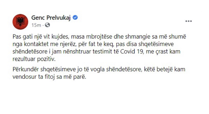 “Për gati një vit kujdes, masa mbrojtëse dhe shmangie sa më shumë nga kontaktet me njerëz, për fat të keq, pas disa shqetësimeve shëndetësore i jam nënshtruar testimit të Covid-19, me ç’rast kam rezultuar pozitiv. Përkundër shqetësimeve jo të vogla shëndetësore, këtë betejë kam vendosur ta fitoj sa më parë”, shkruante Genci krahas fotos së tij.