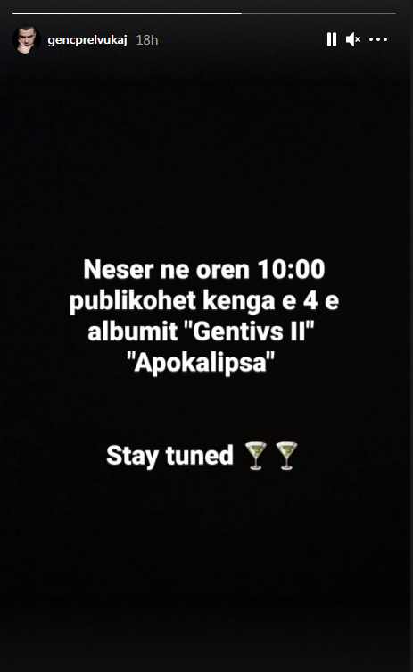 Ai ka bërë një tjetër postim së fundmi ku shkruan: “Nesër në orën 10:00 publikohet kënga e 4 e albumit ‘Gentivs II’ ‘Apokalipsa’”.