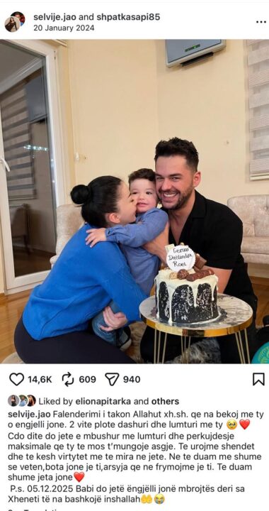 Krahas imazhit, Selvije Jao ka edituar edhe mbishkrimin në postim, ku i dedikon një mesazh prekës të birit: “P.s. 05.12.2025 Babi do jetë ëngjëlli jonë mbrojtës deri sa Xheneti të na bashkojë inshallah🤲😭”.
