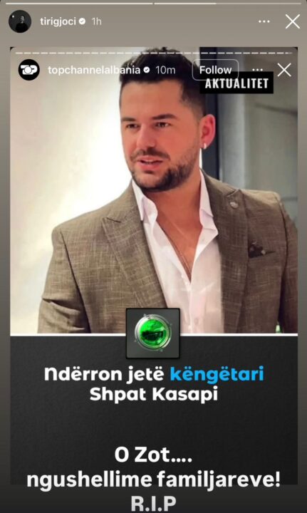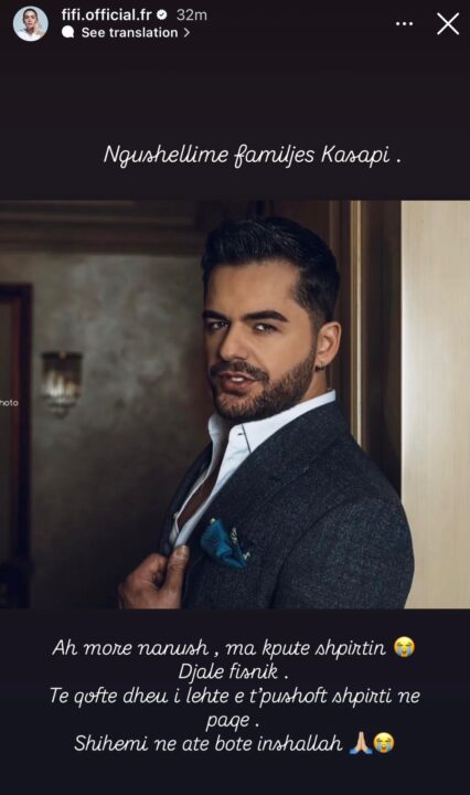 “Ngushëllime familjes Kasapi. Ah more nanush, ma këpute shpirtin. Djalë fisnik. Të qoftë dheu i lehtë e t’pushoft shpirti në paqe. shihemi në atë botë inshallah”.