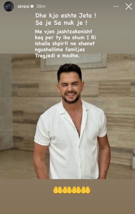 “Dhe kjo është jeta! Sa je sa nuk je! Më vjen jashtëzakonisht keq për ty, ike shumë i ri. Ishalla shpirti në xhenet, ngushëllime familjes. Tragjedi e madhe”.