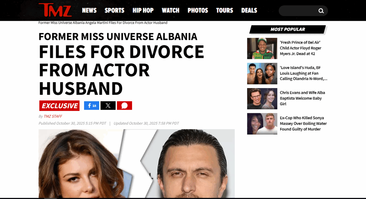 Duke cituar dokumentet ligjore, TMZ shkruan se bukuroshja shqiptare ka dorëzuar kërkesën në Gjykatën e Los Angeles të enjten, duke shënuar 24 tetorin si datën zyrtare të ndarjes.
