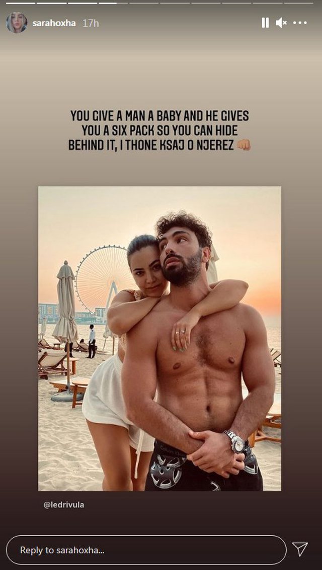 Së fundmi, Ledri ka ndarë me ndjekësit një foto ku shfaqet duke treguar muskujt e barkut, ndërsa Sara e përqafon nga pas.