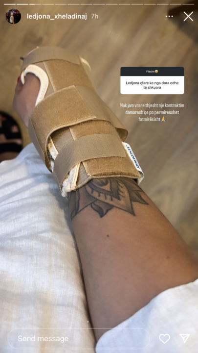 E kështu ka ndodhur edhe së fundmi, teksa ajo ka ndarë disa foto e video në “Instagram”. Në një nga postimet e saj, ndjekësit kanë vënë re se njërën dorë e ka të fashuar.