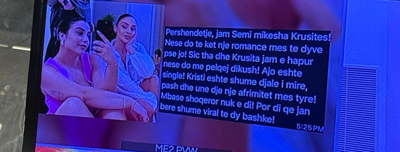 “Përshëndetje, jam Semi mikesha Krusites! Nëse do të ketë një romancë mes të dyve pse jo. Siç tha dhe Krusita, ‘jam e hapur nëse do më pëlqejë dikush’. Ajo është single dhe Kristi është shumë djalë i mirë. Pashë dhe unë dje një afrimitet mes tyre, mbase shoqëror nuk e di. Por di që janë bere shumë viralë të dy bashkë”- tha ajo.