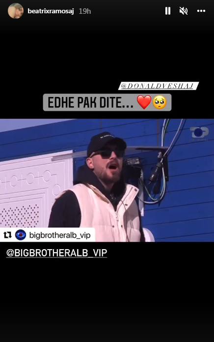 “Edhe pak ditë…”, ka shkruar Beatrix bashkëngjitur me videot e postuara në “Instastory”, ku tregon Donaldin duke dëgjuar këngën e saj.