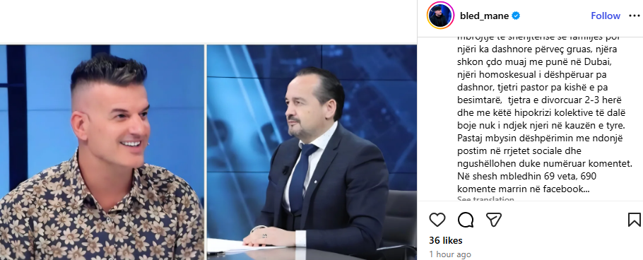 Ka mjaftuar kjo deklaratë e Bledi Manes në emisionin “Live From Tirana” me Ronaldo Sharkën, që menjëherë në rrjetet sociale të nisin kundërpërgjigjet mes gazetarit dhe pastorit.